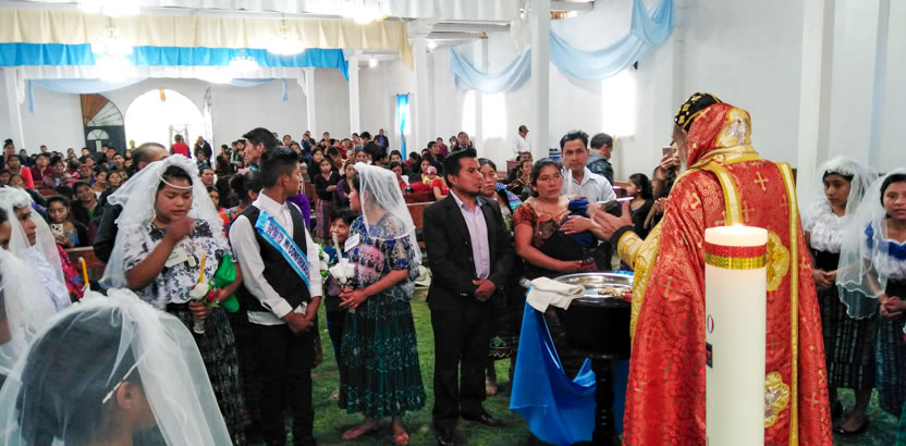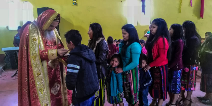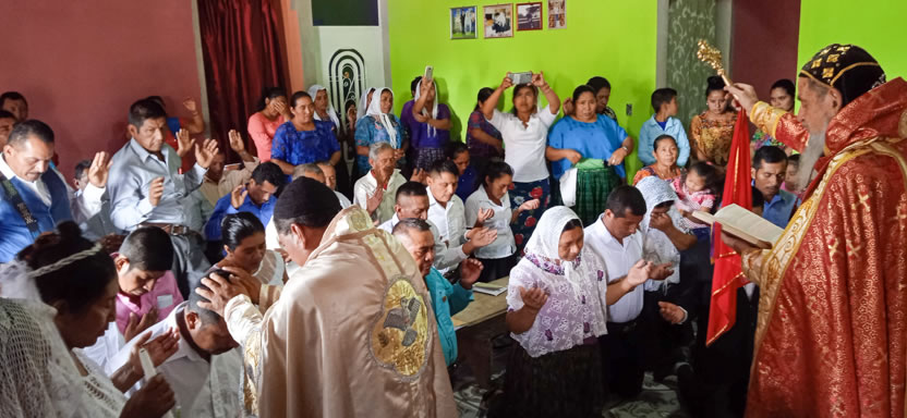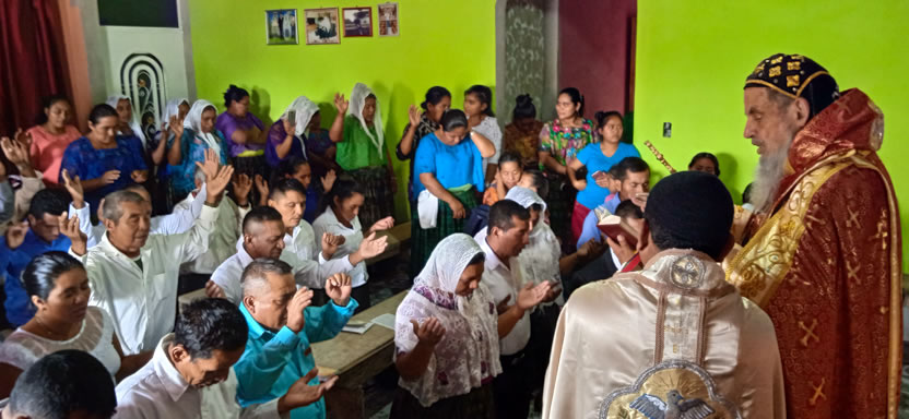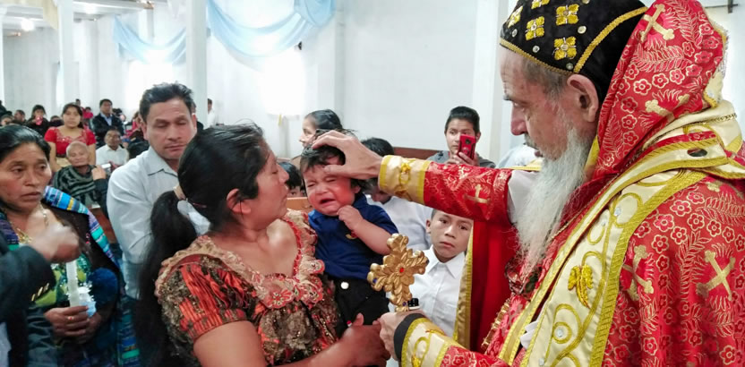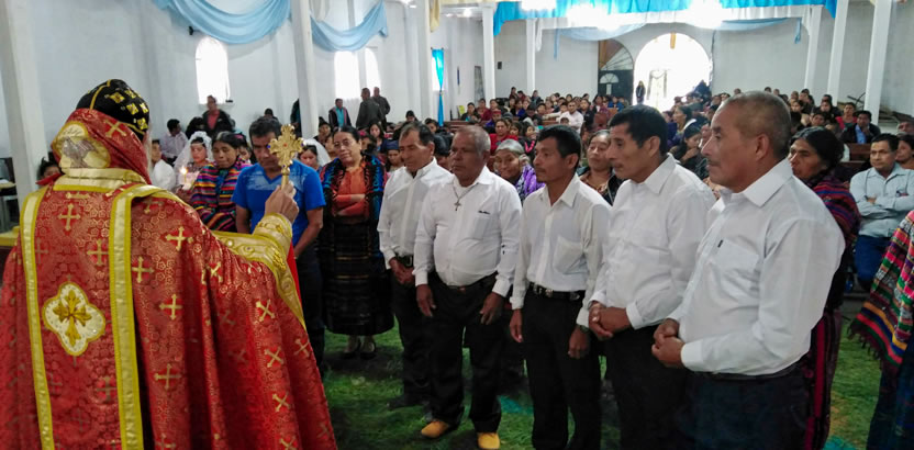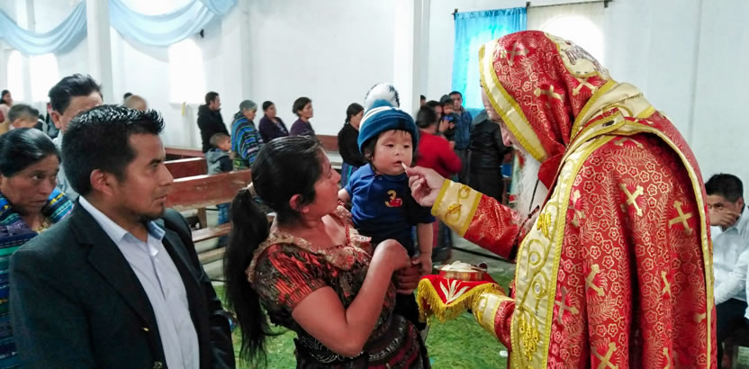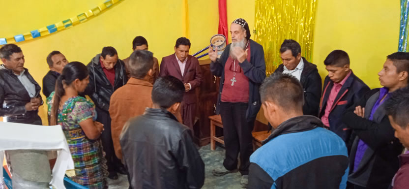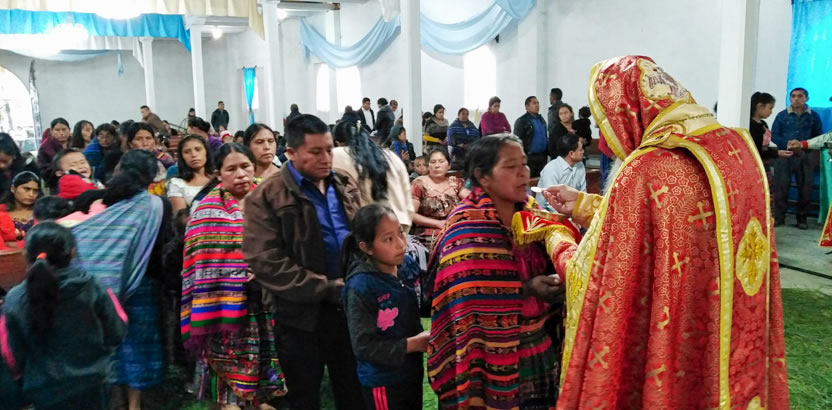 Después de ser saludado el arzobispo por los hermanos, presidió la celebración de la divina liturgia, para los hermanos de la comunidad de Zunil y de algunos de la comunidad de Mayaland.