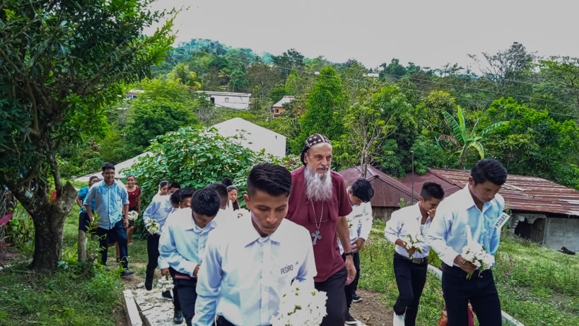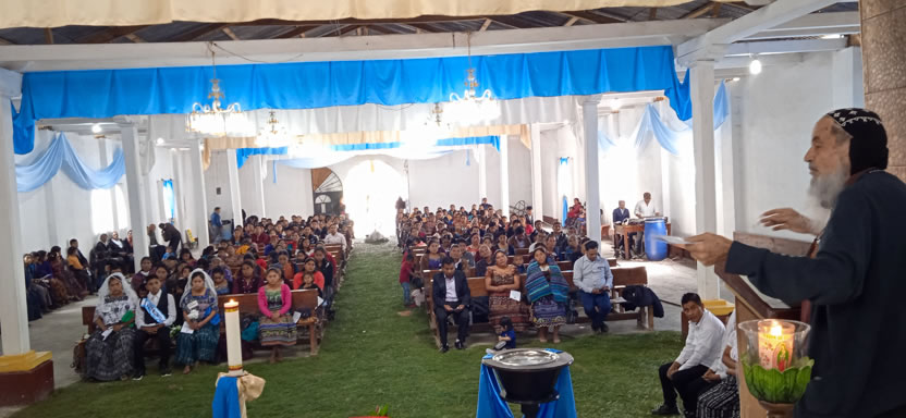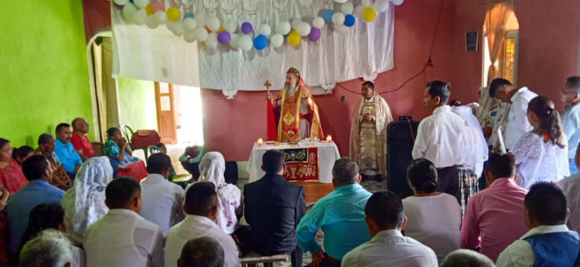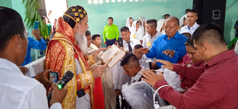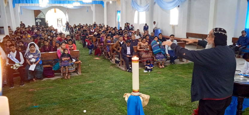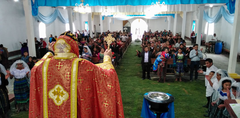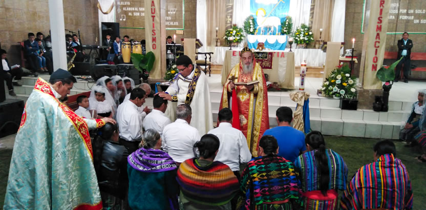 El domingo de resurrección, 4 de abril, el arzobispo llegó hasta la sede del Centro Pastoral de Chicamán, Las Anonas, Chicamán, para presidir la celebración de la divina liturgia con los hermanos.