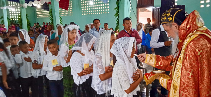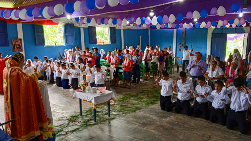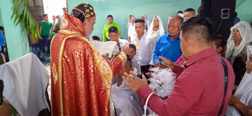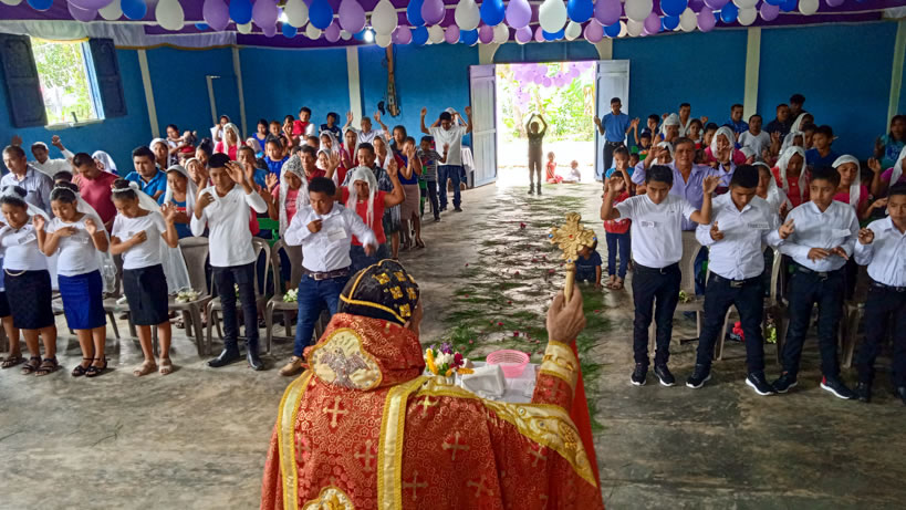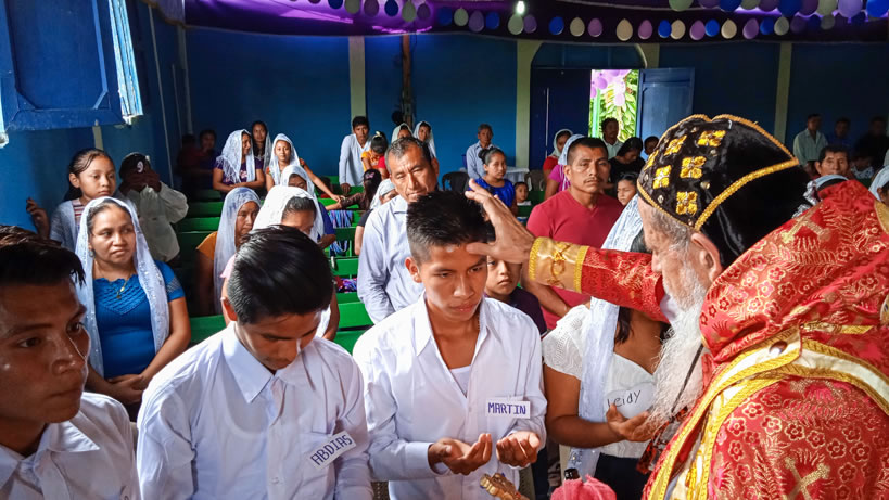 Dentro del marco de la celebración de la divina liturgia, se administró la confirmación y el envío misionero a veintidos hermanos. diecinueve, miembros de la comunidad local y tres de la comunidad de Mayaland.