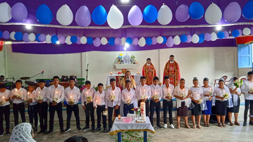 Dentro del marco de la celebración de la liturgia, se administró la confirmación y el envío misionero a cuatro hermanos de la comunidad de Sayajché, Petén.