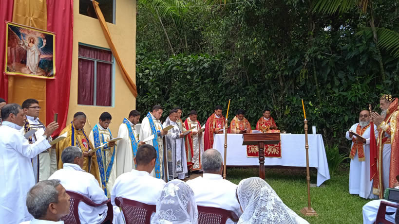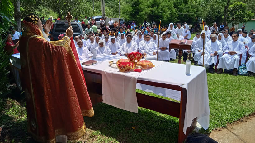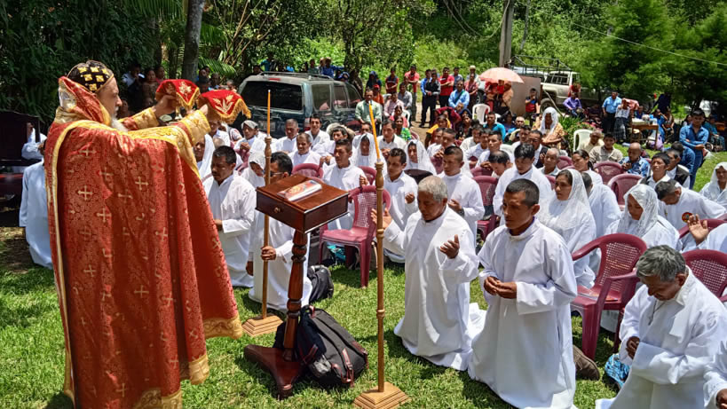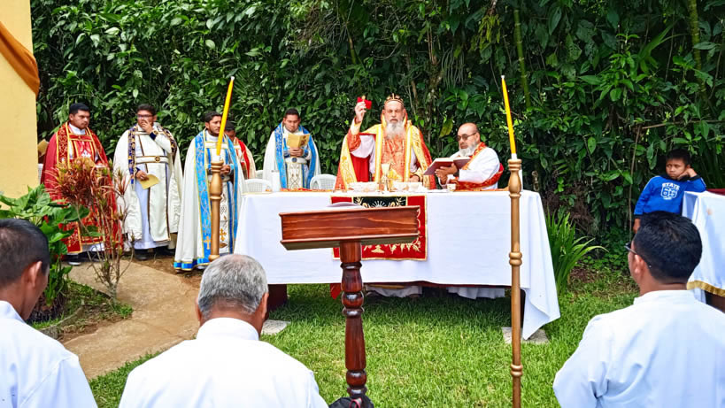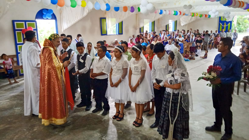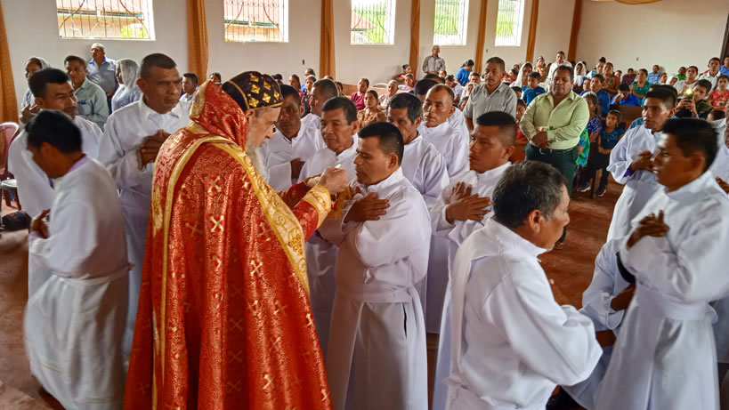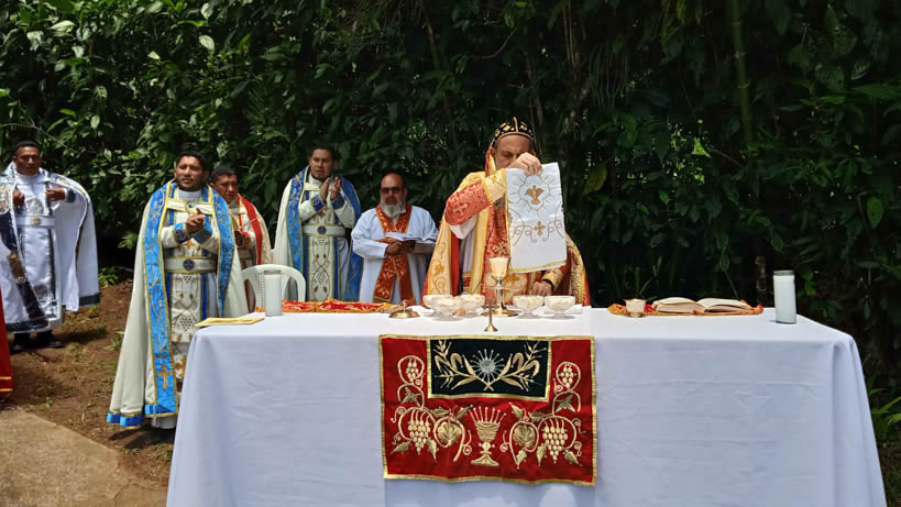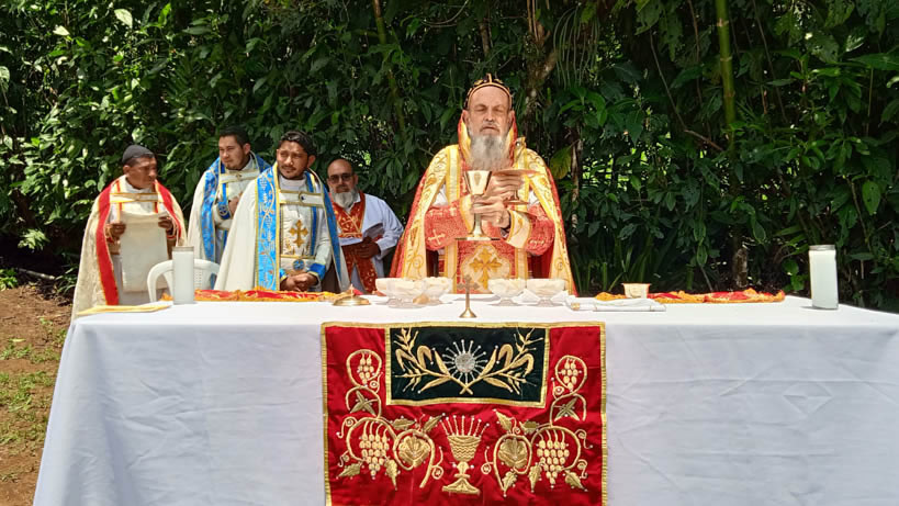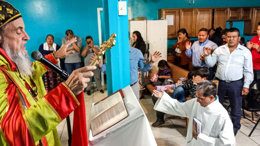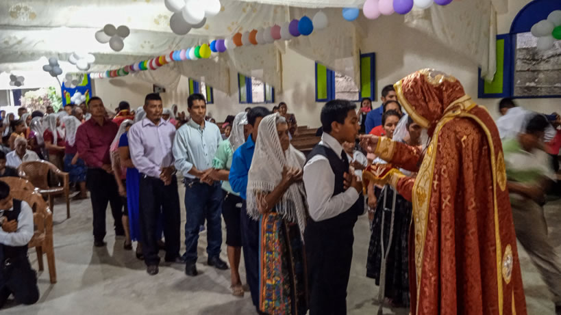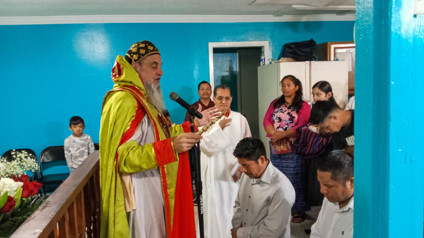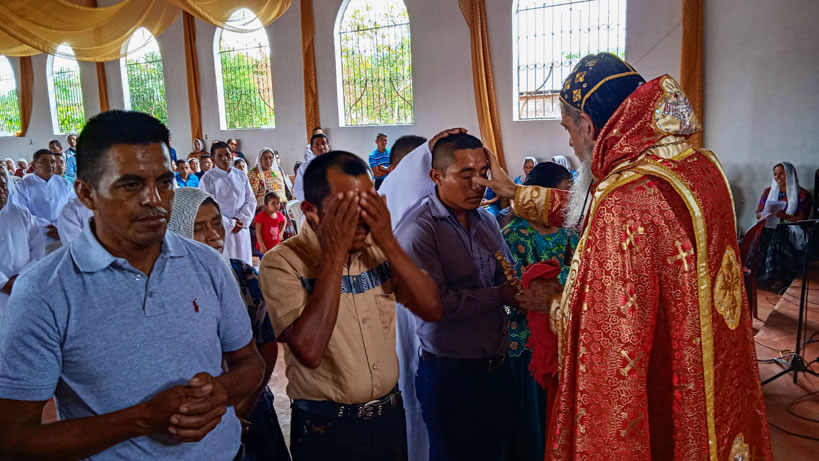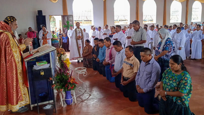 Hacia media mañana, el arzobispo presidió la celebración de la Divina Liturgia, en la que concelebraron los doce presbíteros que ejercen el ministerio en la vicaría del norte de Guatemala.