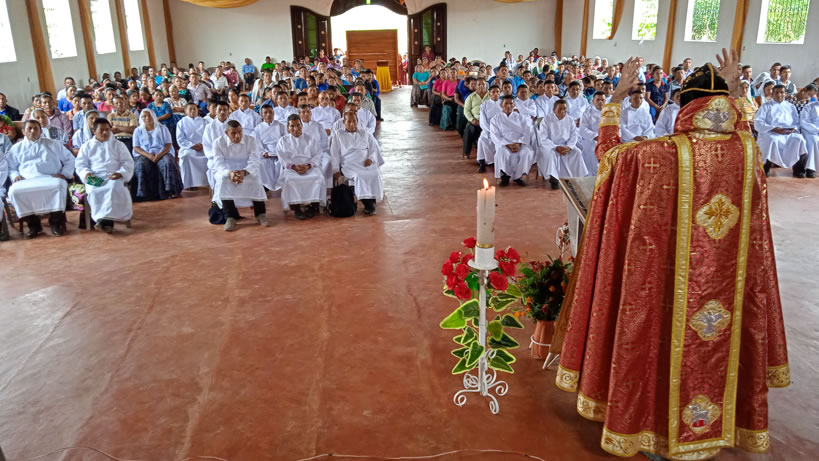 También dentro del marco de la celebración de la divina liturgia, el padre Óscar, párroco local, presentó a ocho hermanos, procedentes de varias comunidades, para que se les administrara la confirmación y el envío misionero.
