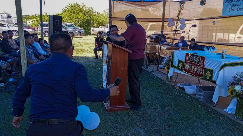 Los hermanos aguardaban la llegada del arzobispo, quien apenas llegó comenzó con la celebración de la Divina Liturgia, dentro de la capilla que ha constuido los hermanos.