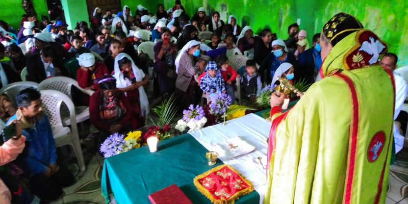 | 19: DIVINA LITURGIA EN LA SEDE PARROQUIAL DE LA GLORIFICACIÓN DE MARÍA, SANTA CRUZ BARILLAS, HUEHUETENANGO. |