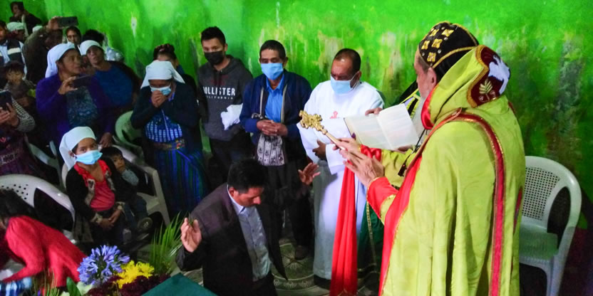 Hacia el final de la mañana, el arzobispo llegó hasta la comunidad Nueva Jerusalén, ubicada en el centro del municipio de San Mateo Ixtatán, Huehuetenando.