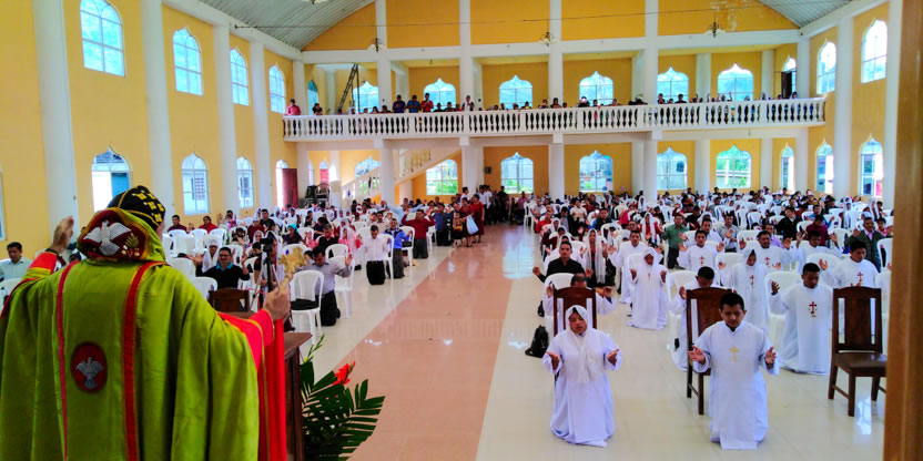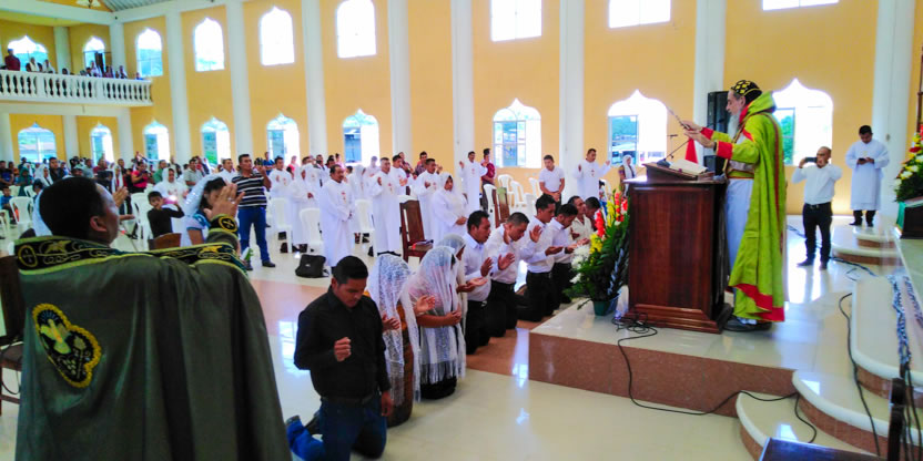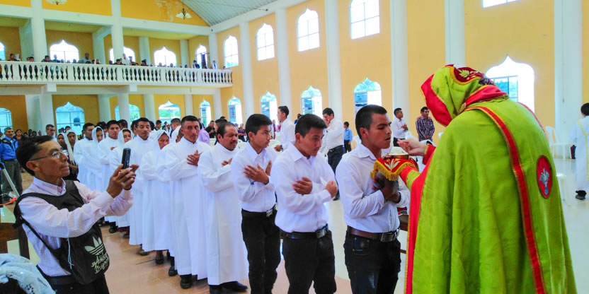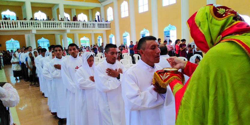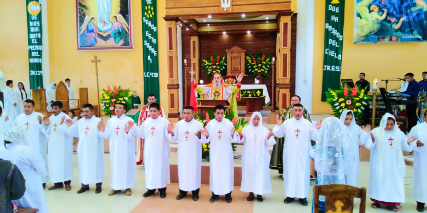 | 19: BENDICIÓN DE CATEQUISTAS DE COMUNIDADES DE LA PARROQUIA GLORIFICACIÓN DE MARÍA, BARILLAS. |