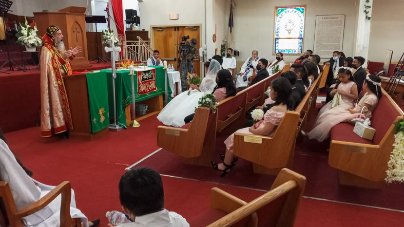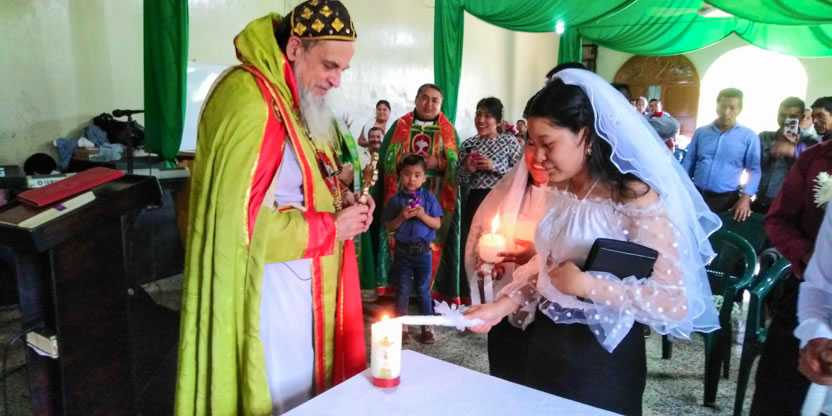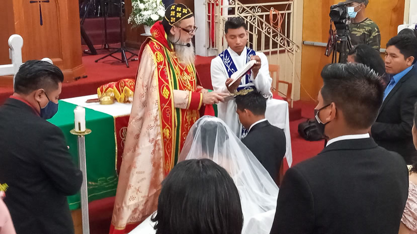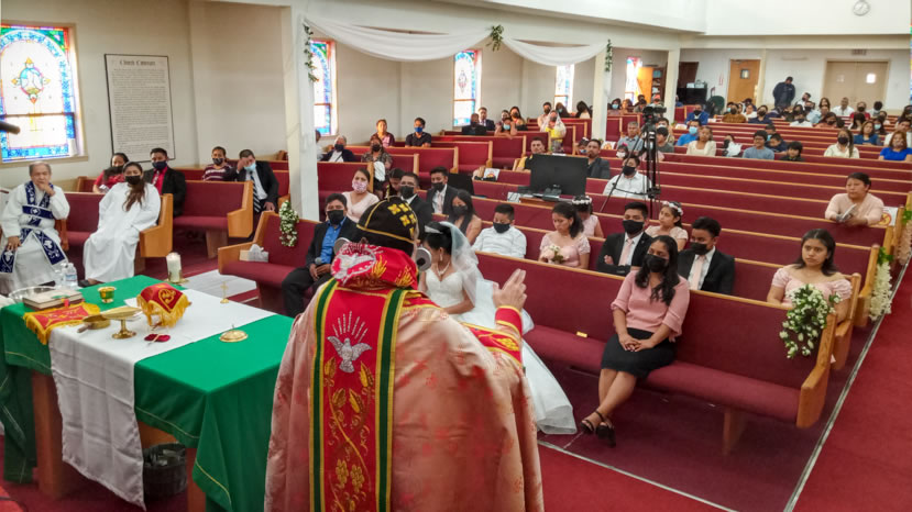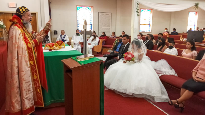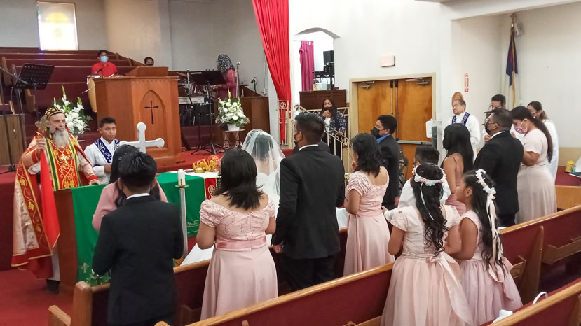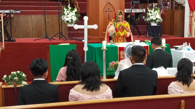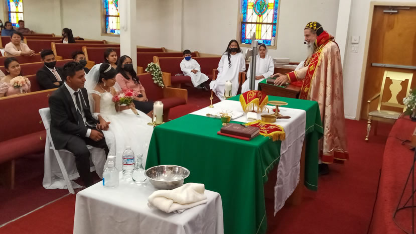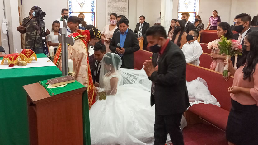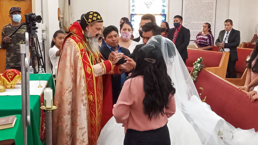 Dentro del marco de la celebración de la divina liturgia en la comunidad de El Pescador, el arzobispo celebró el matrimonio entre Samuel y Ana, después de haber tenido una esmerada preparación.