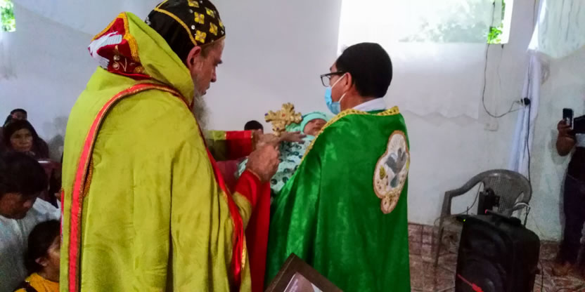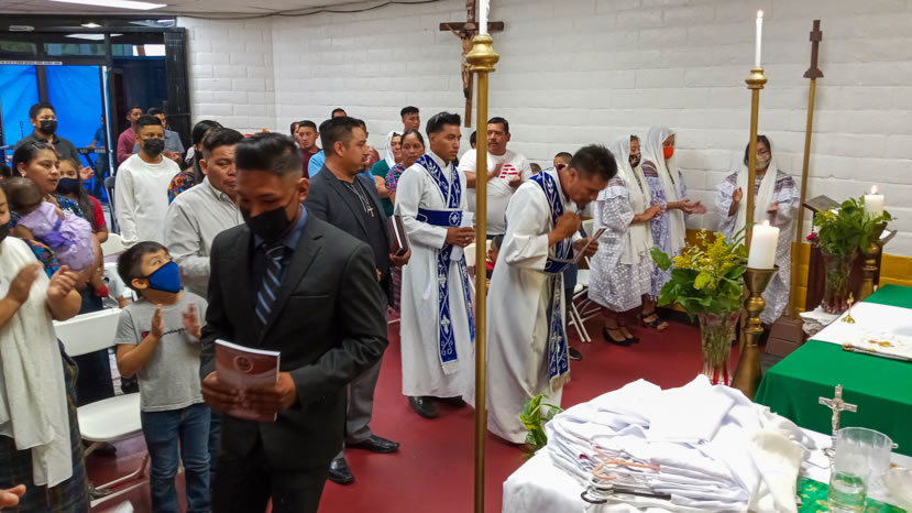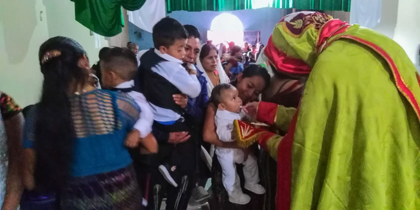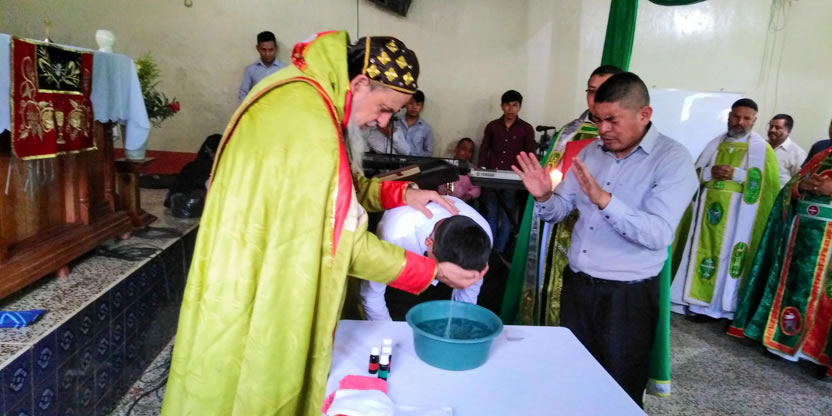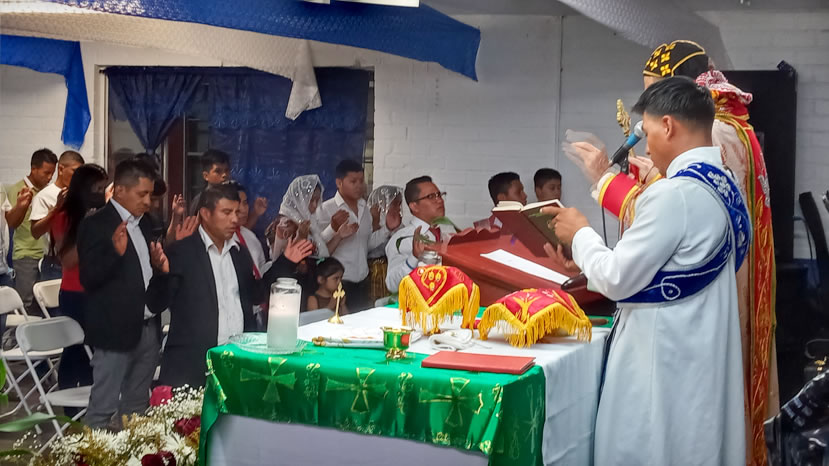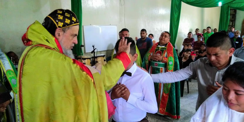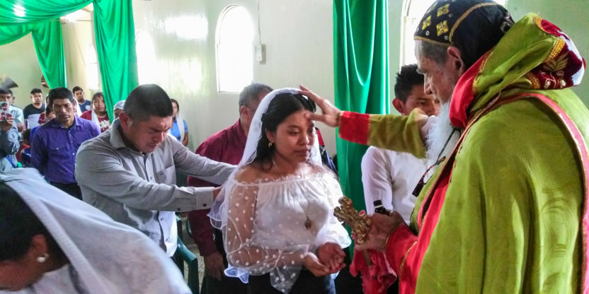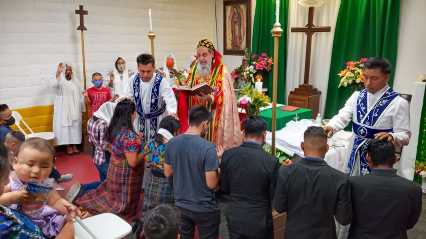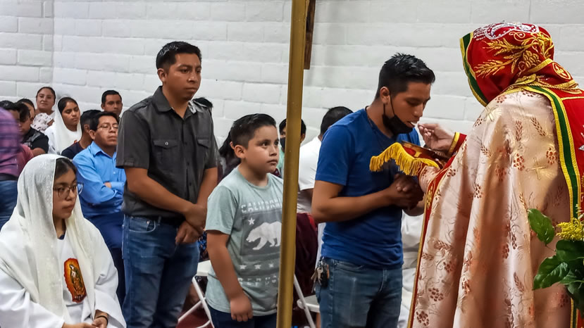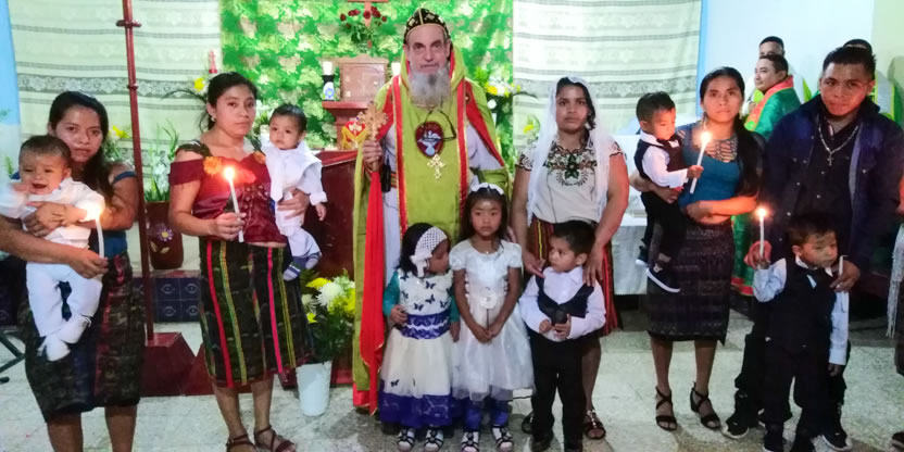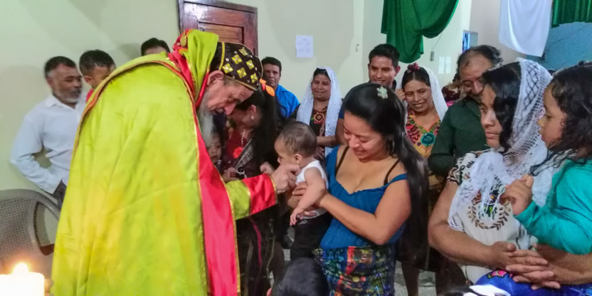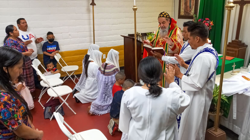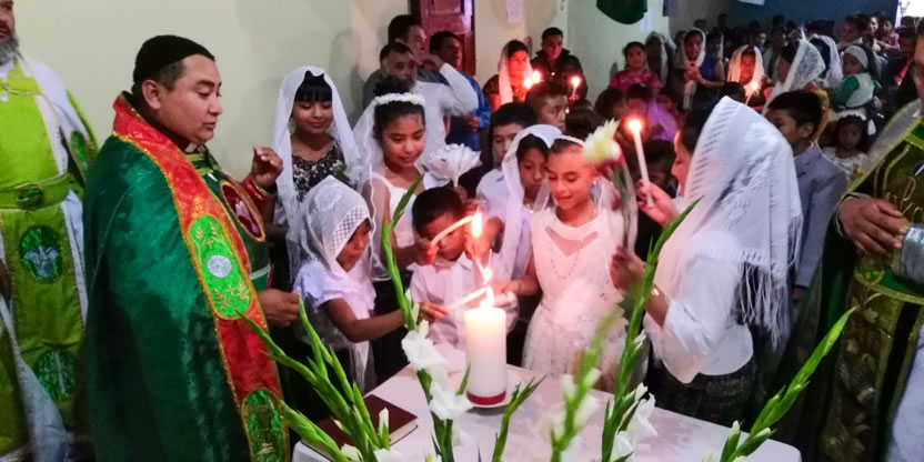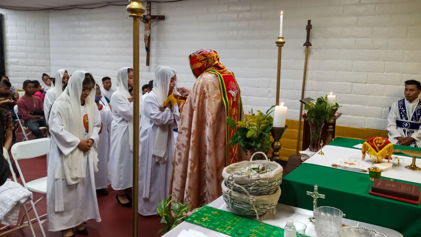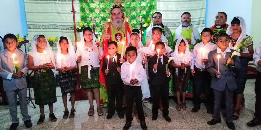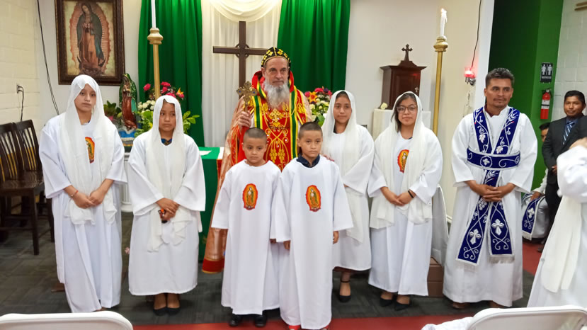 Dentro del marco de la celebración de la divina liturgia a Petatán, se administraron los sacramentos de la iniciación cristiana a ocho hermanos, siete niños y una adulta, madre de dos de las niñas bautizadas.
