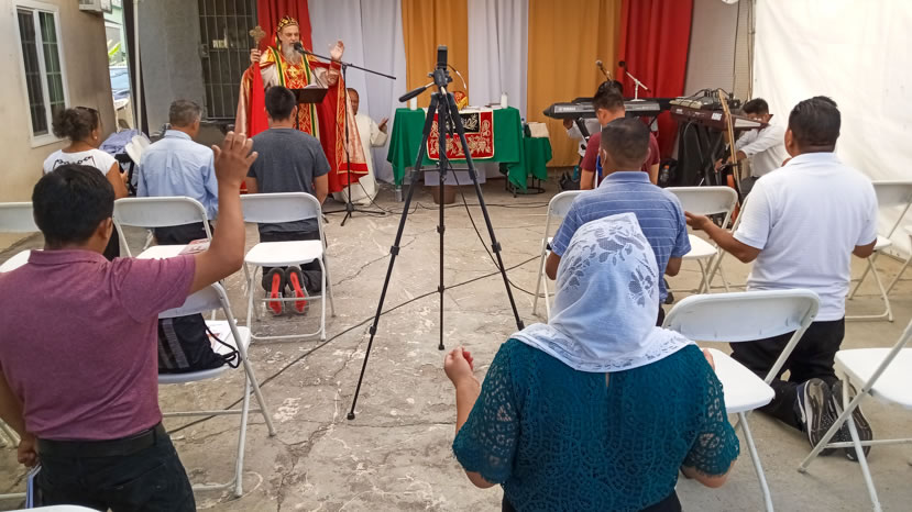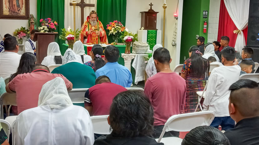 Después de las actividades formativas e informativas, el arzobispo presidió la celebración de la divina liturgia, la cual fue concelebrada por los tres presbíteros presentes.