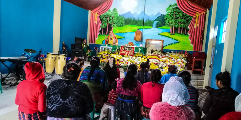 Al caer del día, acompañado del padre Santos Acosta, párroco de la parroquia de Cristo Rey de Jacaltenango, llegó el arzobispo hasta la comunidad Buxup de Jacaltenango.