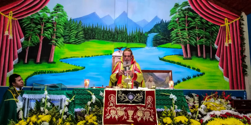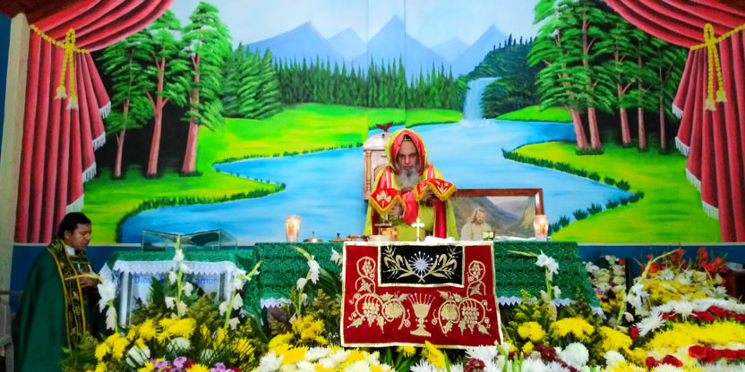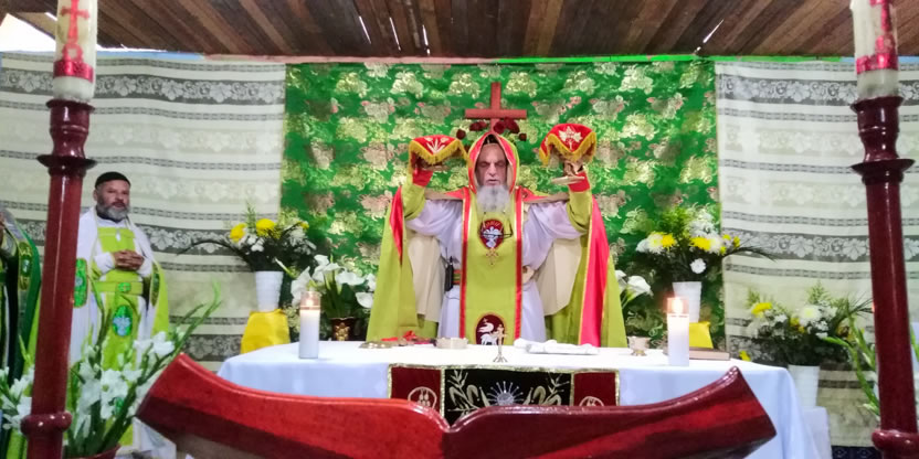 | Dentro del marco de la celebración de la divina liturgia en Buxup, el arzobispo bendijo a los hermanos que se estaban comprometiendo a ser auténticos discípulos del Señor, dejándose guiar por la fuerza del Espíritu Santo. |