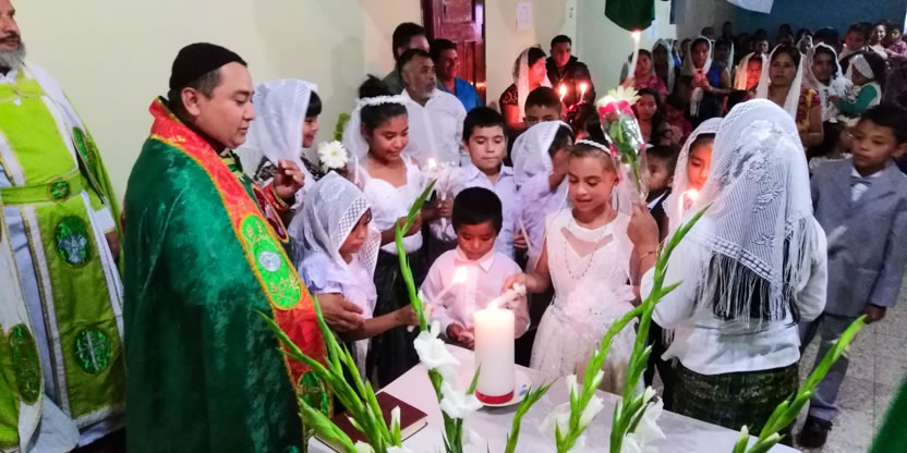 También dentro del marco de la celebración de la liturgia en Petatán, un grupo numeroso de niños hizo su primera reconciliación y la comunión solemne.