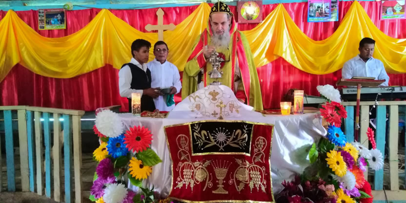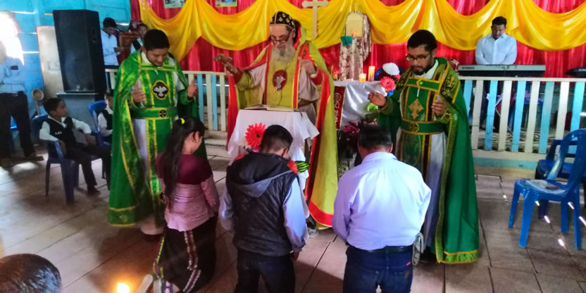 Dentro del marco de la celebración de la divina liturgia, el arzobispo oró y bendijo a los hermanos de la comunidad de Sotzil, implorando al Señor que, llenos del Espíritu Santo puedan vivir y dar testimonio de la fe.