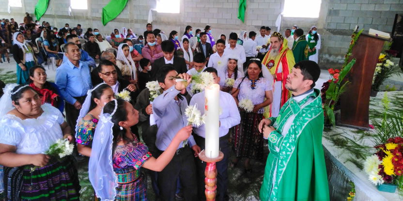 Dentro del marco de la celebración de la divina liturgia, se administró la confirmación y el envío misionero a 19 hermanos, provenientes de diferentes comunidades del centro pastoral de Cunén.