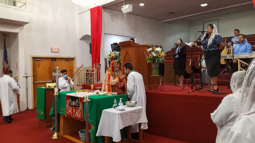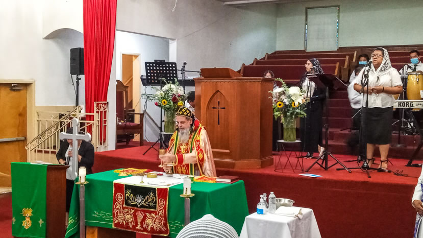 A media tarde del domingo primero de agosto, el arzobispo presidió la celebración de la divina liturgia, en la cual concelebró el padre Óscar Guardado, párroco local.