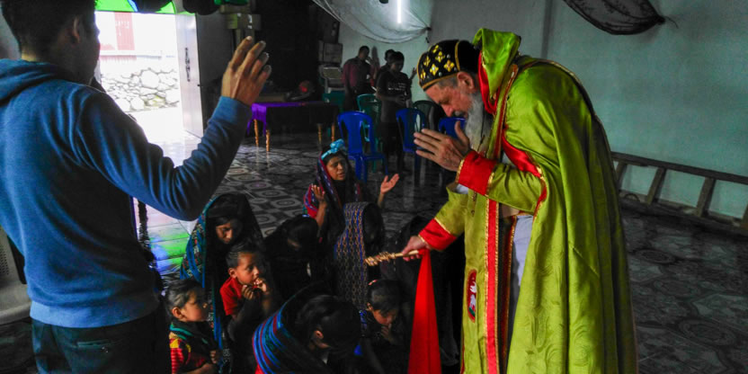 Hacia el final de la tarde y, bajo un tremendo aguacero, Mor Santiago Eduardo visitó la comunidad de Chuitzanchaj, para celebrar con ellos la divina liturgia.