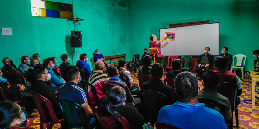 Después de escuchar las diferentes inquietudes los los hermanos dirigentes de las comunidades de San Juan Atitán, el arzobispo procedió a impartires una breve formación sobre temas litúrgicos.