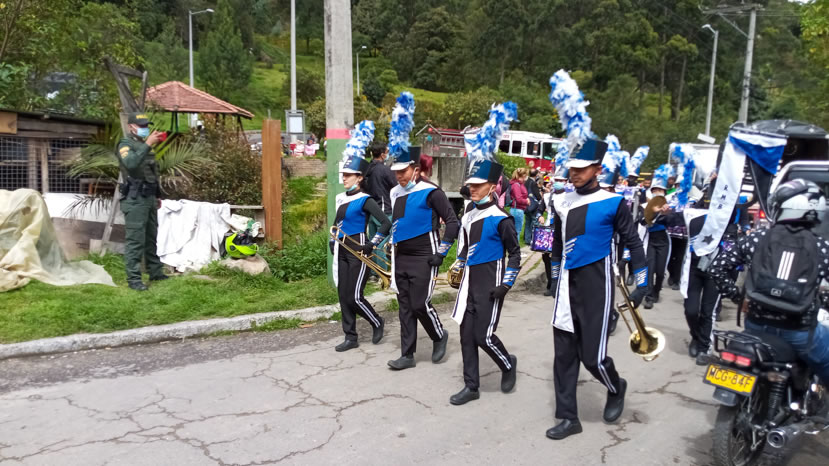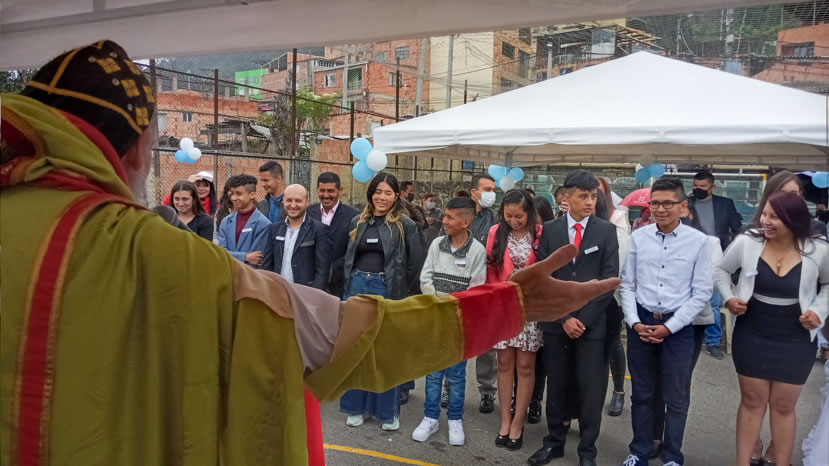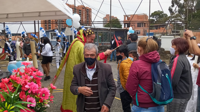 En la caravana que acompañaría el ingreso del arzobispo y los presbíteros a la comunidad Bosques Calderón, también participó la banda de guerra y el grupo de danza de un colegio ubicado en el sur de Bogotá que también es atendido espiritualmente por los padres de la vicaría que ejercen su ministerio en esa zona.