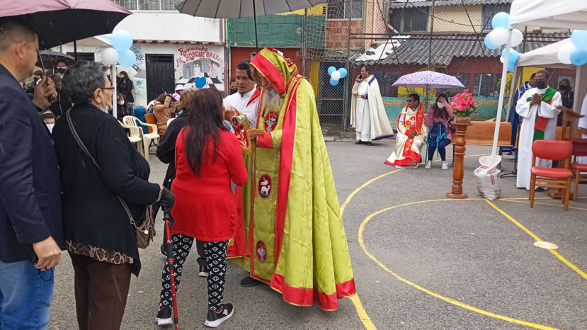 Desde el ingreso de la comunidad, numerosos hermanos, procedentes de Bosques de Calderón, así como de otros sectores de Bogotá, se dieron cita para saludar al arzobispo y a los presbíteros. |