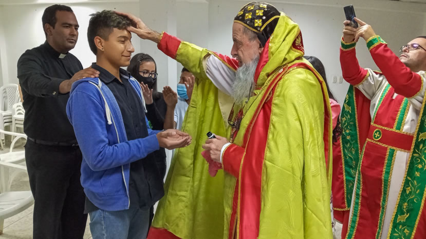 Dentro del marco de la celebración de la divina liturgia, también se administró la confirmación y el envío misionero a tres hermanos, miembros de la comunidad.