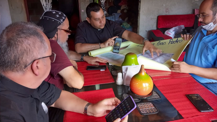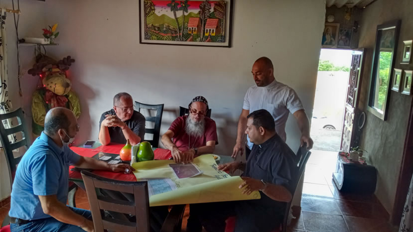 Después de la llegada, el arzobispo tuvo como primera actividad la revisión de los planos que el arquitecto que está ayudando al Padre Ricardo había preprado.