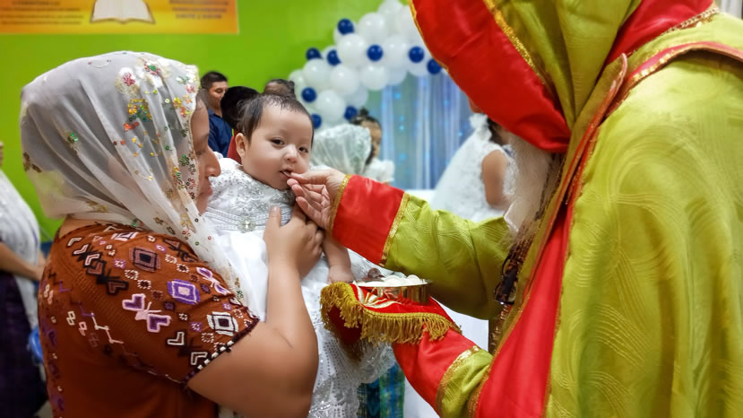 Cuatro de ellos son hijos de la misma familia que, aunque desde hace buen tiempo participa en la comunidad, hasta ahora tuvo la oportunidad de bautizar a su niños. Las otras dos niñas, son hijas de otras familias que participan activamente en la comunidad. |