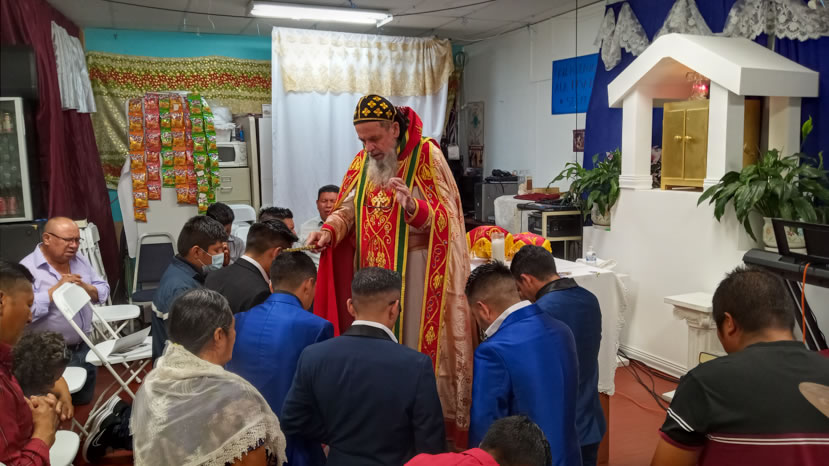 El miércoles a mediodía llegó el arzobispo a Los Angeles, procedente de Guatemala y, después de ocuparse en asuntos tendientes a la consecución del templo para que tenga sus sede la parroquia de California San Miguel Arcángel, por la noche, presidió la celebración de la divina liturgia en la comunidad Pacto Divino de Los Angeles.