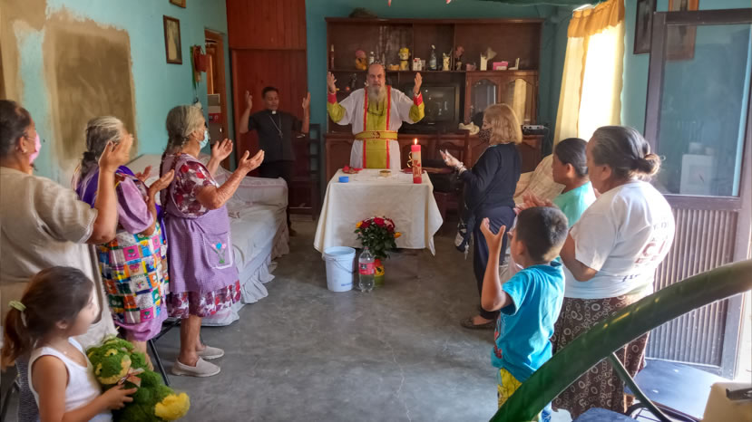 Después del mediodía, el arzobispo llegó hasta la casa de miembros de la comunidad del Centro Misionero Santa María de Guadalupe, en donde los hermanos se habían dado cita para recibir al arzobispo.