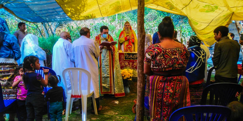 El martes 26 de octubre, por la mañana, el arzobispo llegó hasta la comunidad de Racaná, del Centro Pastoral de Santa María Chiquimula, Totonicapán, acompañado del Padre Santo, Encargado Pastoral y del diácono Lorenzo, asistente del arzobispo, para celebrar la divina liturgia.
