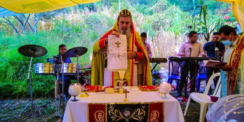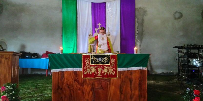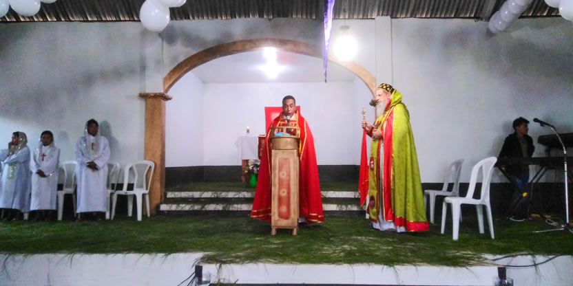 Después de la bendición del templo, el arzobispo presidió la celebración de la divina liturgia para los miembros de la comunidad de Santo Domingo Guaixná.