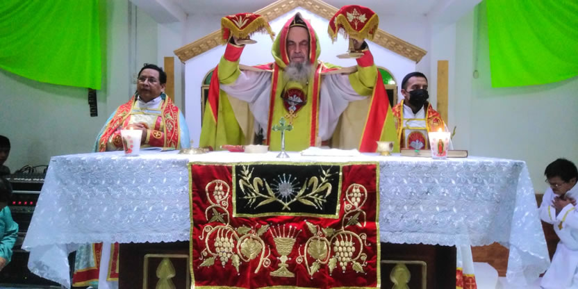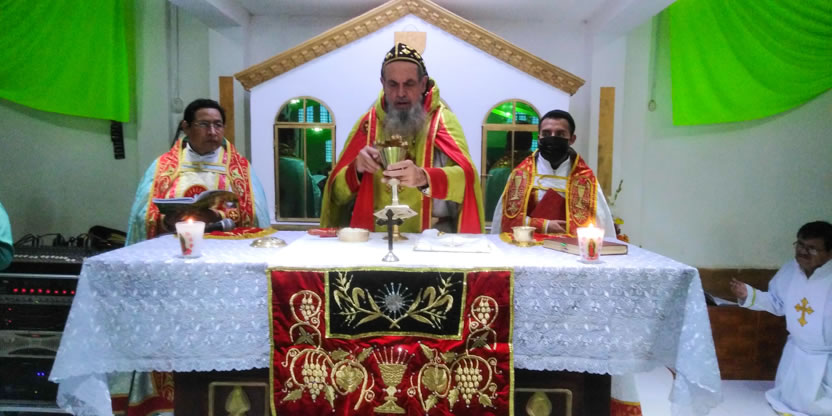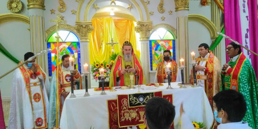Poco antes del mediodía, dio inicio la celebración de la divina liturgia presidida por el arzobispo y en la que concelebraron seis presbíteros que ejercen el ministerio en el área cubierta por el decanato: los padres Fredi, Bernabé, Julio, Juan Arcadio, Matías y el Padre Henry del seminario que, actualmente está colaborando en la parroquia de Soloma.
