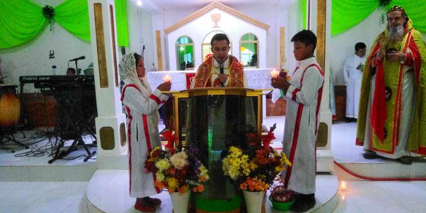 Dentro del marco de la celebración litúrgica, se administró la confirmación de la crismación y el envío misionero a dos hermanos: Miguel y Magdalena, de la comunidad local de Racaná.