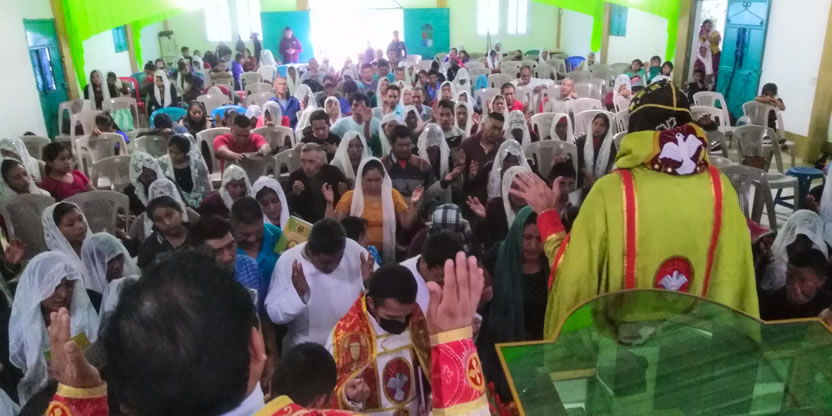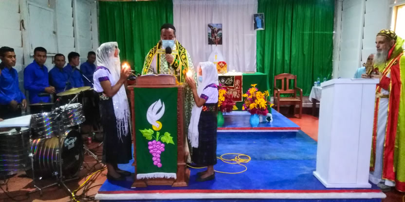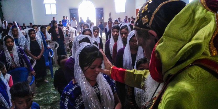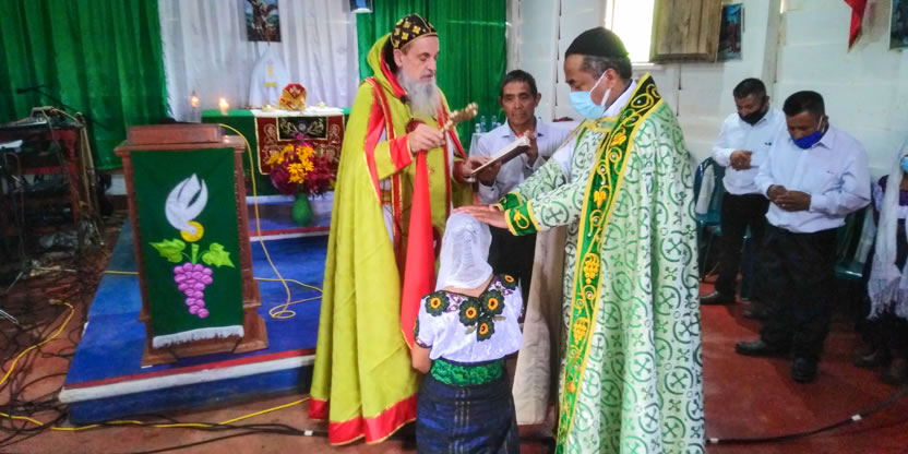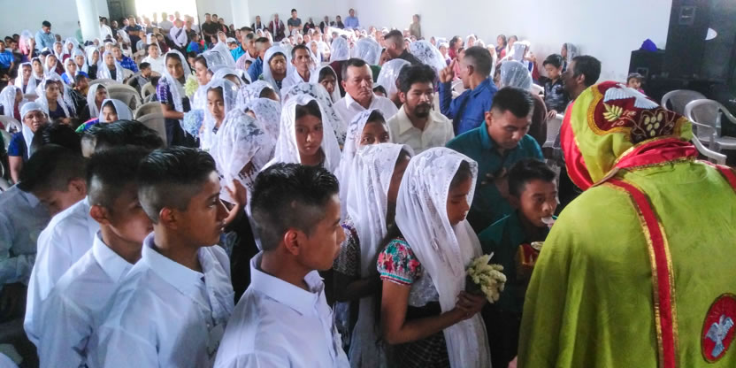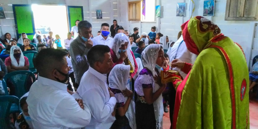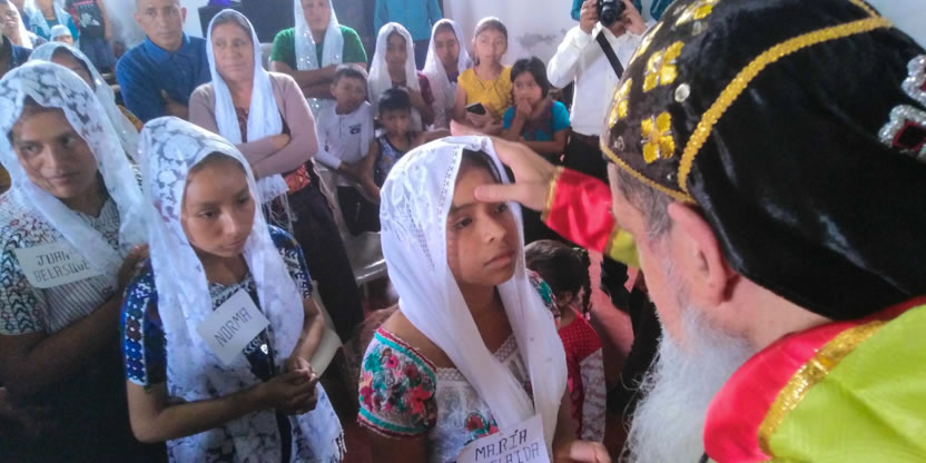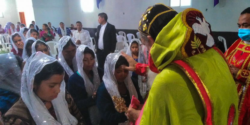 Dentro del marco de la celebración de la divina liturgia, se administró la confirmación y el envío misionero a veinte hermanas, miembros de la comunidad de Santo Domingo Guaixná.