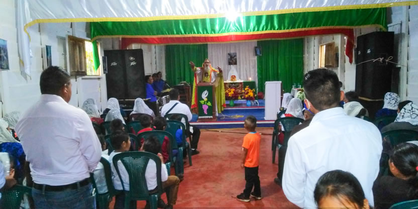 Los hermanos le recibieron con mucha alegría en el ingreso de la comunidad y, luego, se hizo una caminata, hasta el lugar en el que se encuentra el templo, en el centro de la comunidad. |