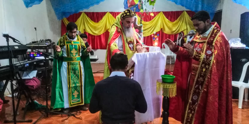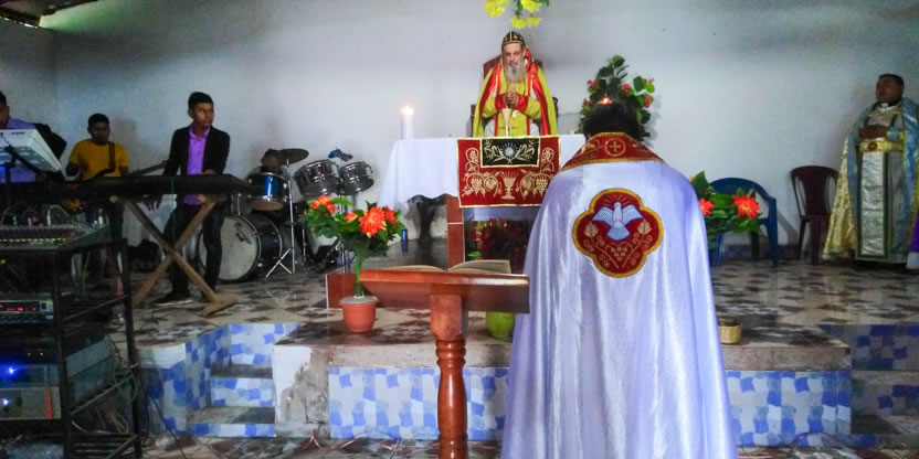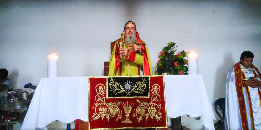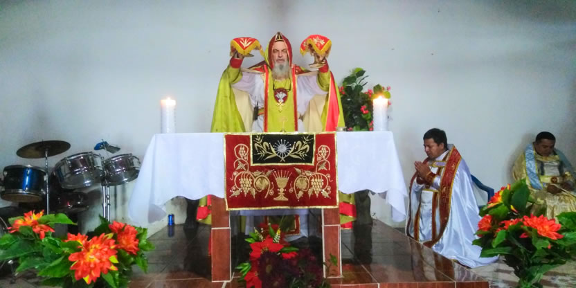 Hacia el mediodía, el arzobispo presidió la celebración de la divina liturgia, en la cual concelebraron los padres Norvin y José Bailiner y participaron los hermanos que habían asistido al decanato de la zona.