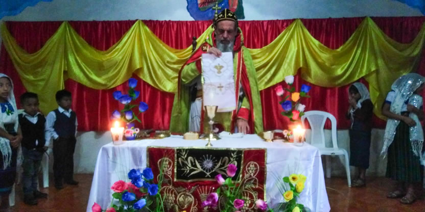 Hacia el final de la mñana, el arzobispo presidió la celebración de la divina liturgia para hermanos de la comunidad de Salquilito, del municipio de Nebaj, El Quiché.