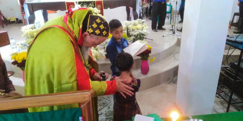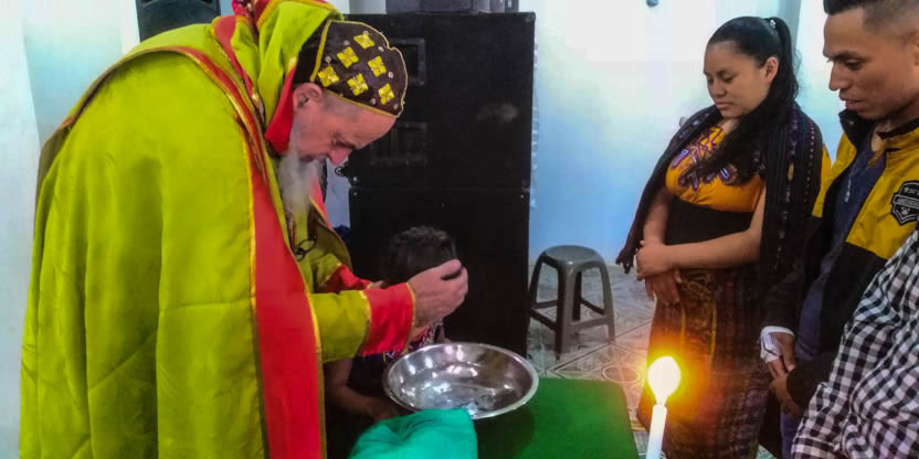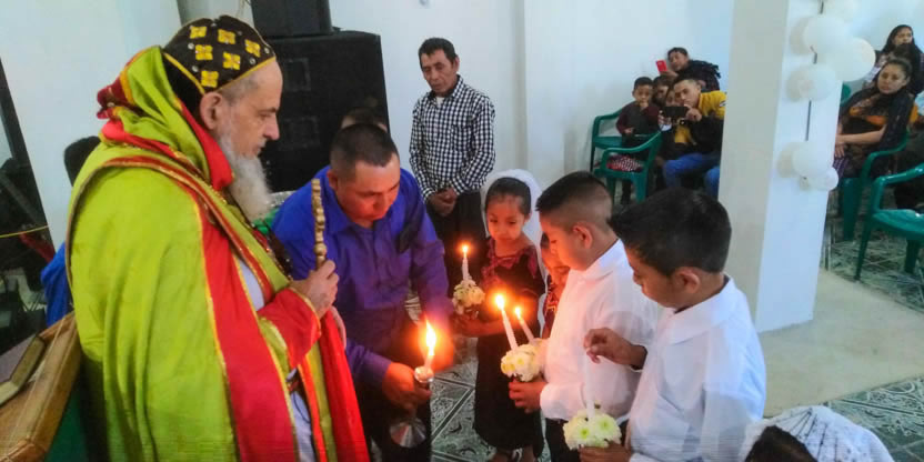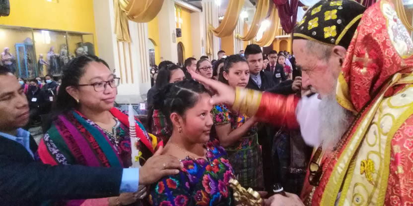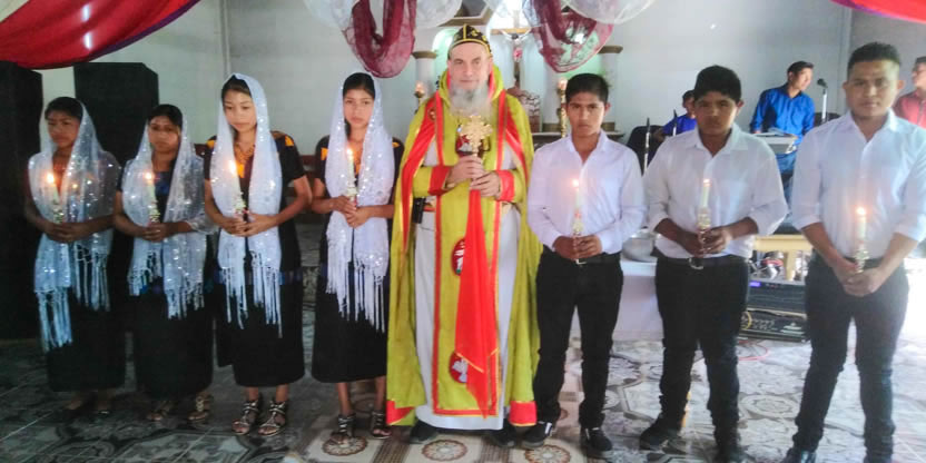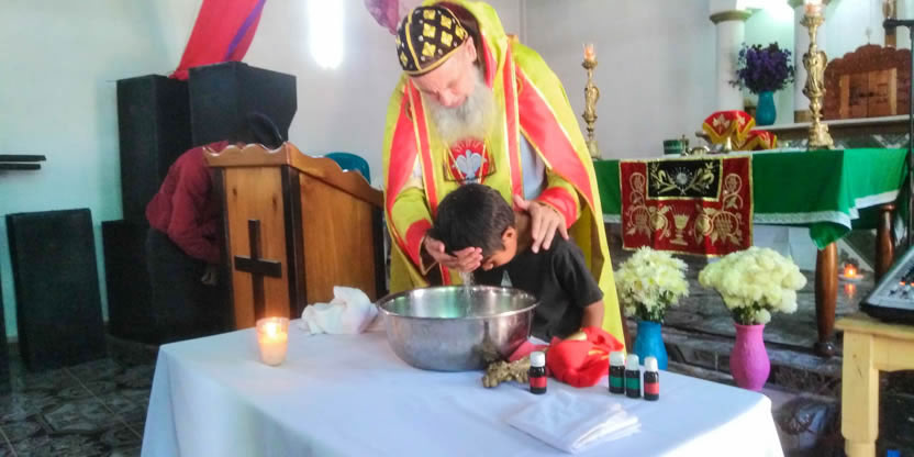 Dentro del marco de la celebración de la divina liturgia, se administraron los sacramentos del bautismo, la crismación y la comunión a la niña Petrona Yolanda.