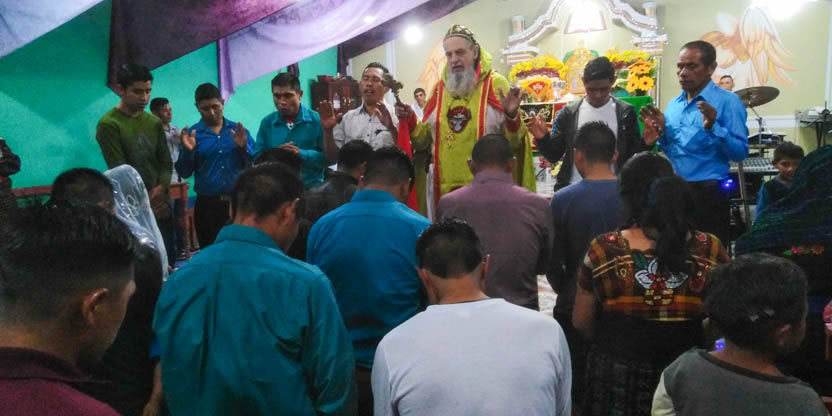 El jueves 25 de noviembre, al caer el día, el arzobispo llegó hasta la comunidd Nuevo Pentecostés de Santiago Atitlán, para compartir con los hermanos y celebrar la divina liturgia.