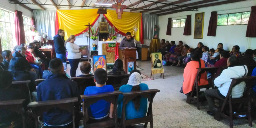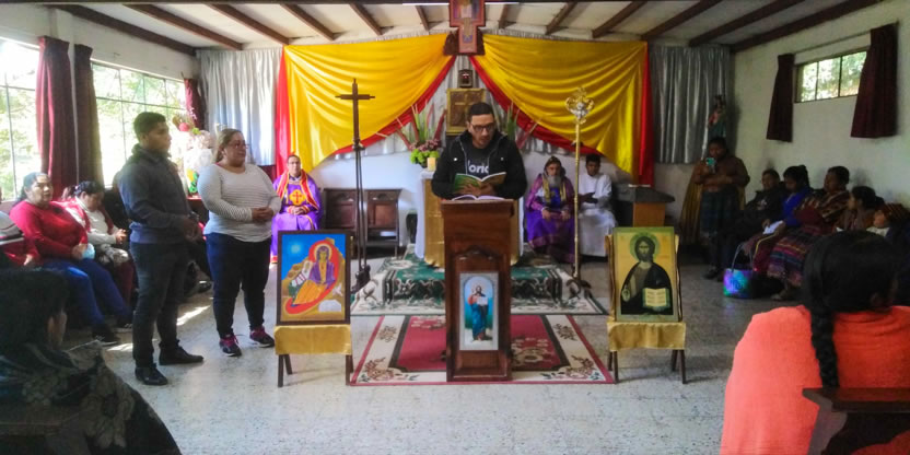 | 28: DIVINA LITURGIA EN LA SEDE DE LA PARROQUIA ESPÍRITU SANTO, LOS GUATES, SAN JUAN SACATEPÉQUEZ. |