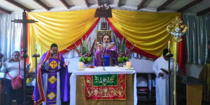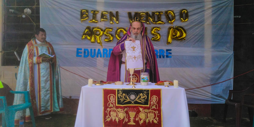 Dentro del marco de la celebración de la divina liturgia, el arzobispo, acompañado por el padre Pedro Martínez, encargado pastoral de ese centro pastoral, oraron por todos los fieles.