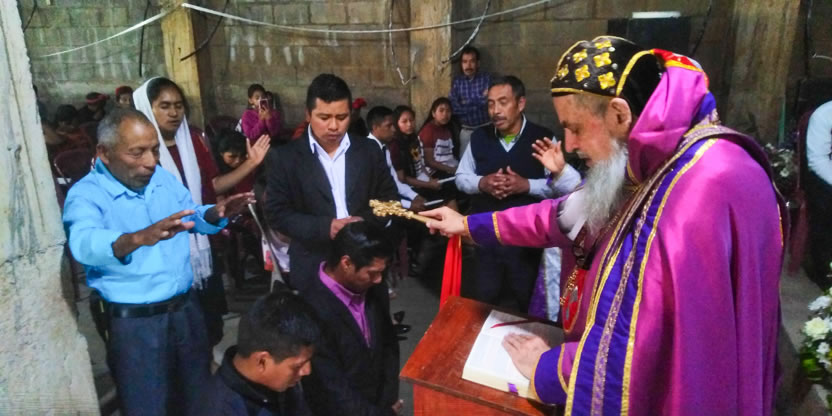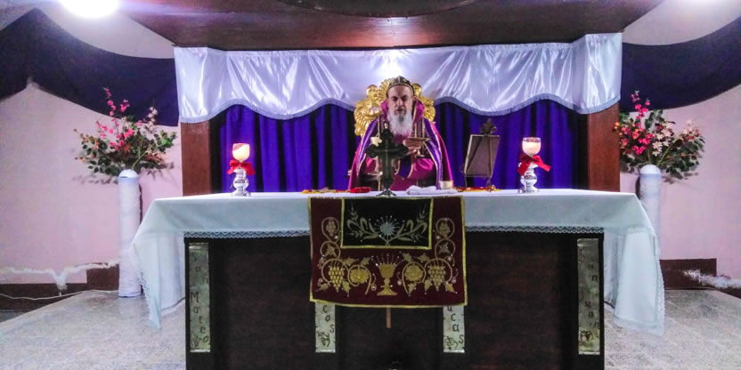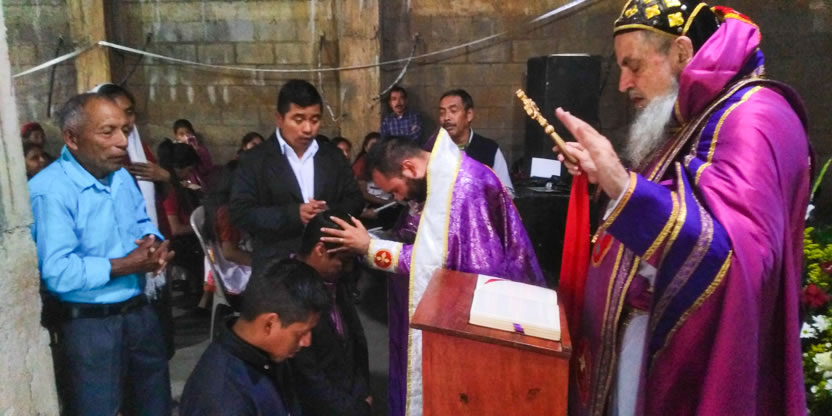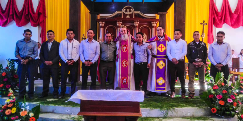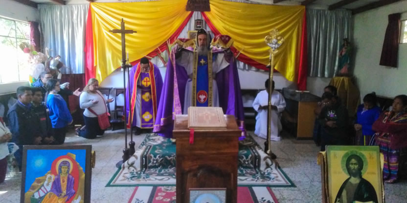 El domingo 28, por la tarde, el arzobispo llegó hasta la sede de la parroquia Espíritu Santo de Los Guates, San Juan Sacatepéquez, para presidir la celebración de la divina liturgia. Le acompaño el Padre Orlando López, párroco local.