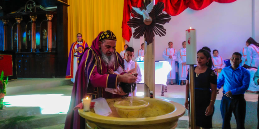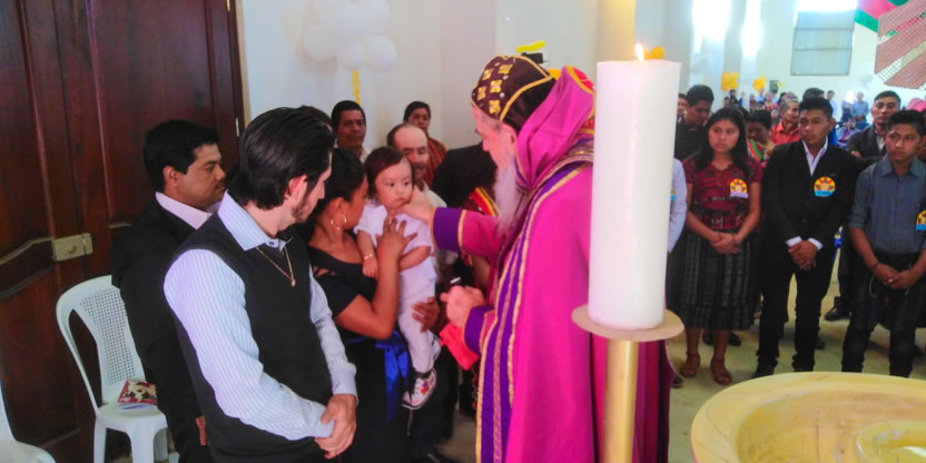Dentro del marco de la celebración de la divina liturgia, se administraron los sacramentos del bautismo, la crismación y la comunión a dos niños: Luis Enrique y Xavi Damián.