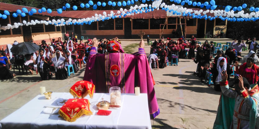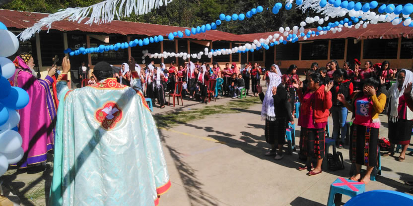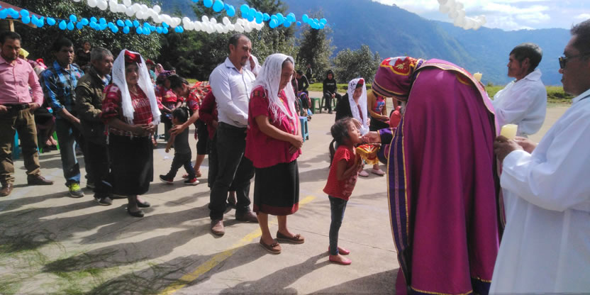El lunes 29 de noviembre, por la mañana, el arzobispo llegó hasta la cima de los Cuchumatanes en donde, en el patio de una escuela del Municipio de Santiago Chimaltenango, se habían congregado los miembros de la comunidad local, para tener la celebración de la divina liturgia con el arzobispo.