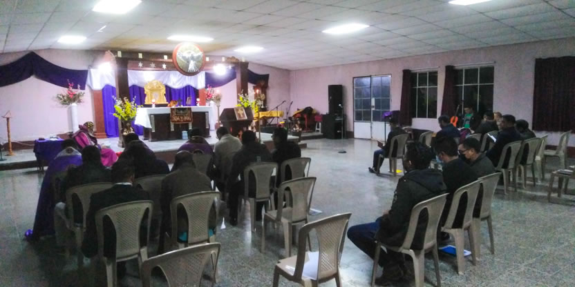 El martes 30 de noviembre, por la mañana, en la capilla del Centro de Formación de Jumaj, se celebró la oración del oficio divino, con la participación del arzobispo y del presbiterio de la vicaría de Huehuetenango.