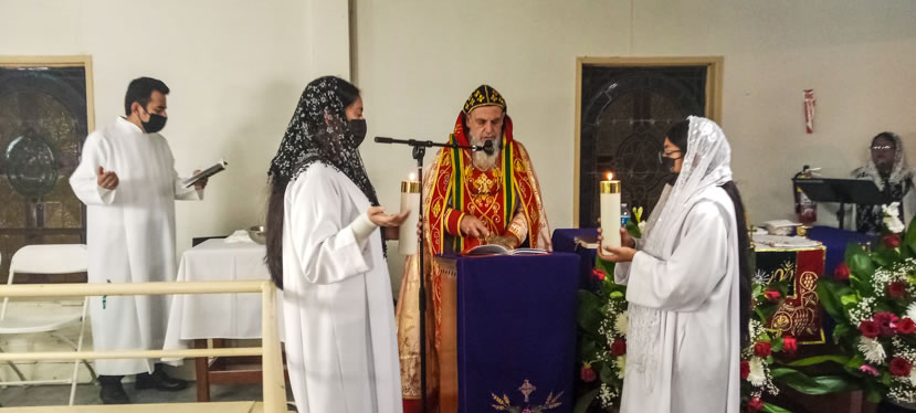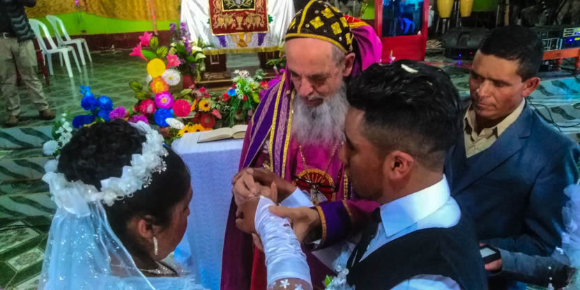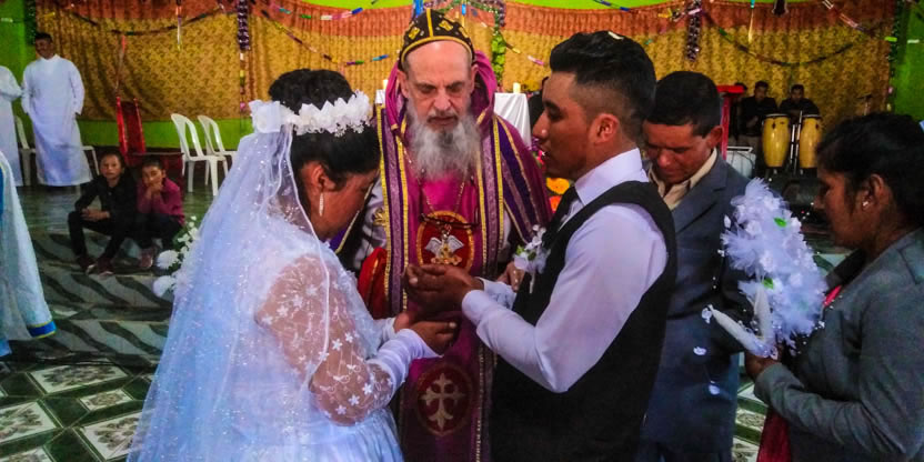 También dentro del marco de la celebración de la divina liturgia, el arzobispo presidió la celebración del matrimonio entre Santos y Heidi, dos miembros del centro pastoral.