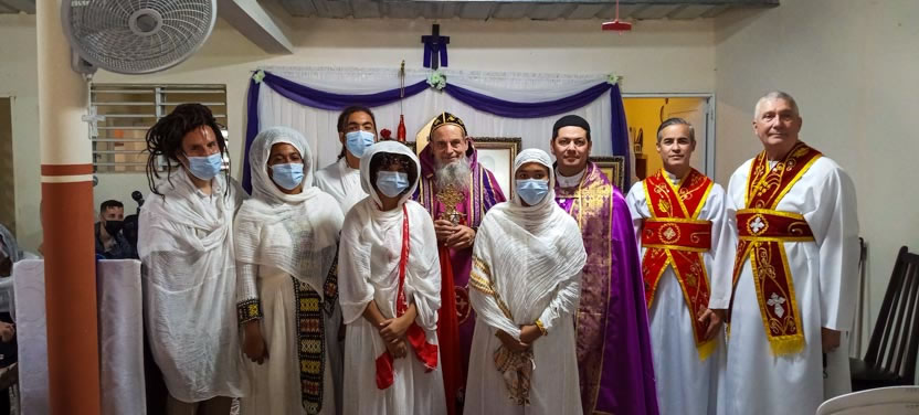 Estaba participando una familia que, durante su estadía en California, se unió a la iglesia ortodoxa etíope, hermana de nuestra iglesia, y que actualmente ha regresado a vivir en Puerto Rico. También se contó con la participación de un hermano ortodoxo ruso miembro de la parroquia de San Espiridión. |