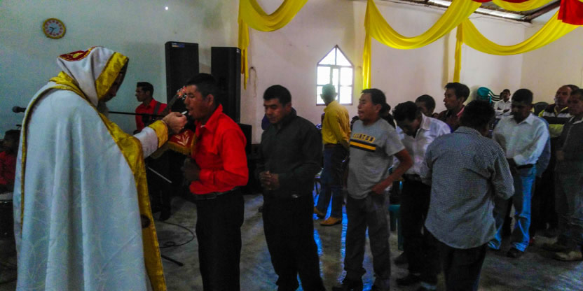 El domingo 26, al caer el día, el arzobispo, acompañado por el Padre Francisco, llegó hasta la comunidad de Chanquejelbé, del municipio de Nentón, para presidir la celebración de la divina liturgia.