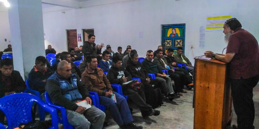 Depués de la formación impartida por el arzobispo, se entabló diálogo entre los participantes en el decanato del norte de Huehuetenango, en San Mateo Ixtatán.