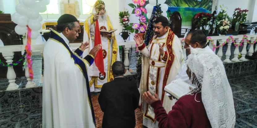 Dentro del marco de la celebración de la divina liturgia, se administraron los sacramentos de la iniciación cristiana a cuatro hermanos. Tres niñas y un adulto que, además celebraría su matrimonio.