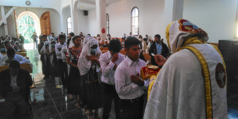 Dentro del marco de la celebración de la divina liturgia, se administró la confirmación y el envío misionero a once hermanos de la parroquia de San Mateo Apóstol.